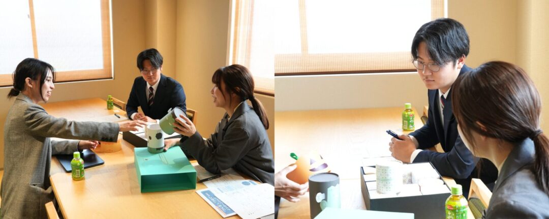 今回は1名の学生が参加し、お客様へのヒアリングから社内での企画会議まで、一連の「モノづくり」の流れを体験しました。