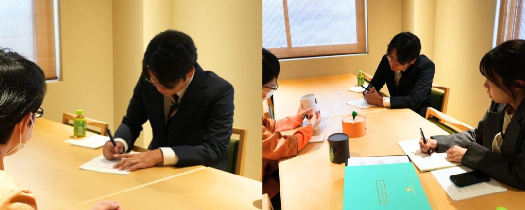 当日は株式会社TREASURE IN STOMACHの柴田社長にお越しいただき、学生が先輩社員のサポートのもと、お客様へのヒアリングを実施しました。